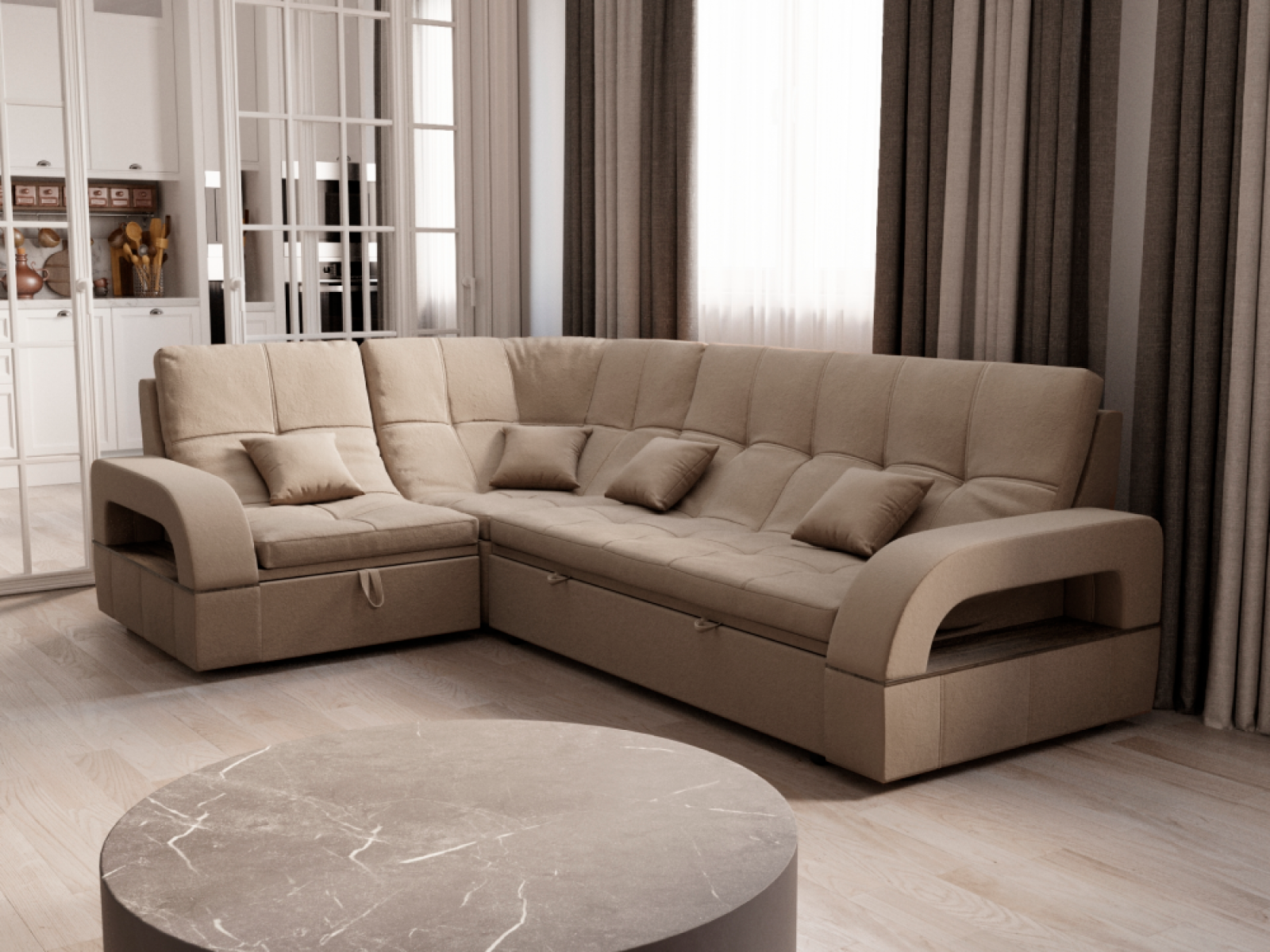 Бежевые угловые диваны