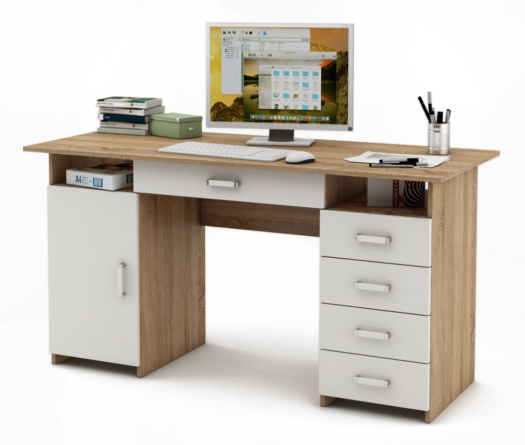 Отзывы о Столплит Письменный стол с ящиками Лайт 7Я Дуб Сонома, Белый
