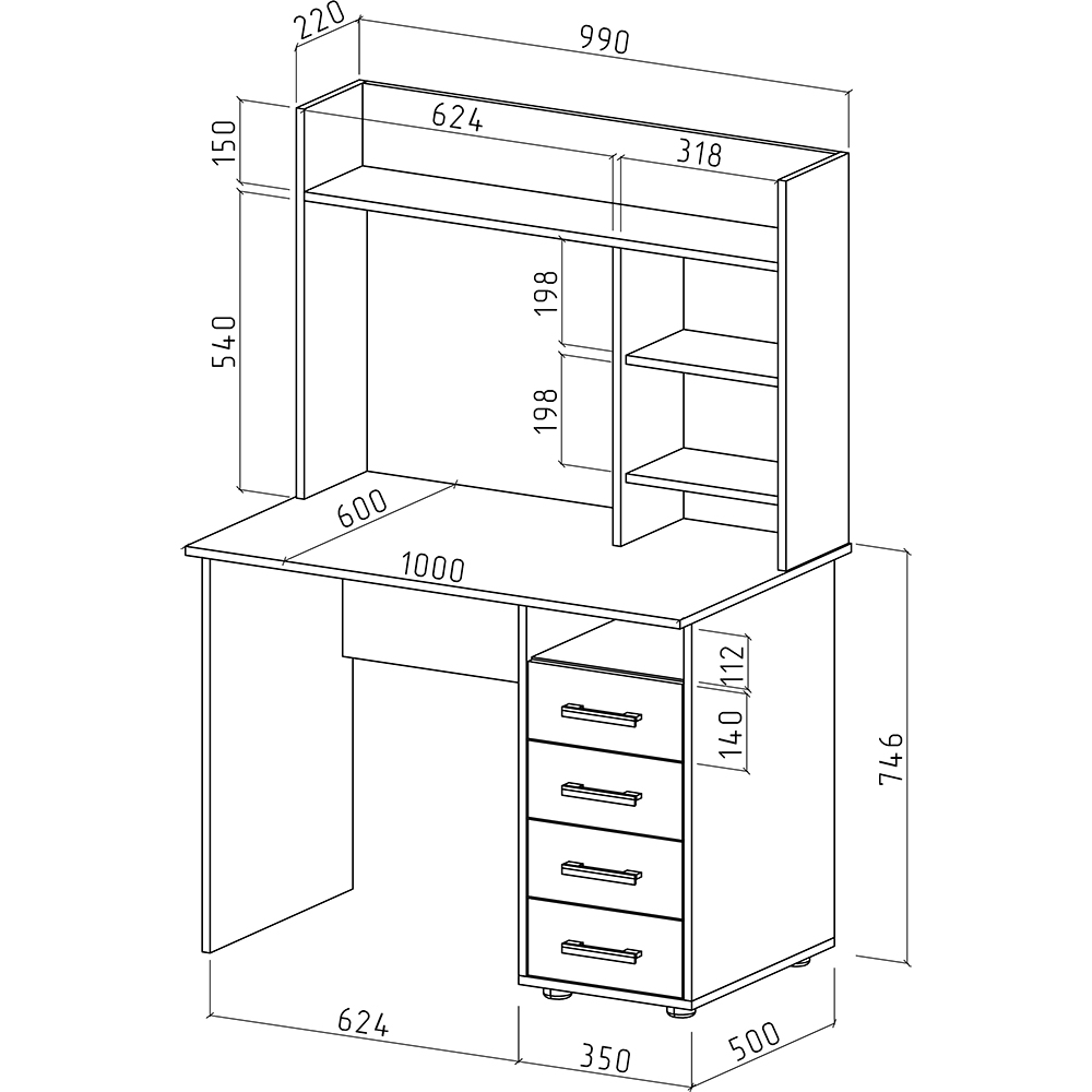 Глубина: 600 мм.