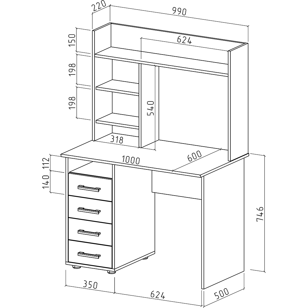 Глубина: 600 мм.