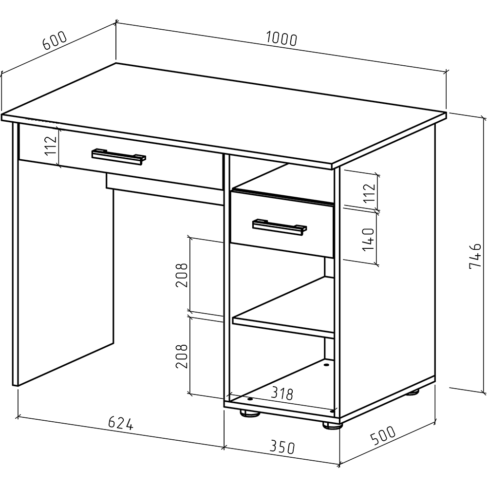 Глубина: 600 мм.