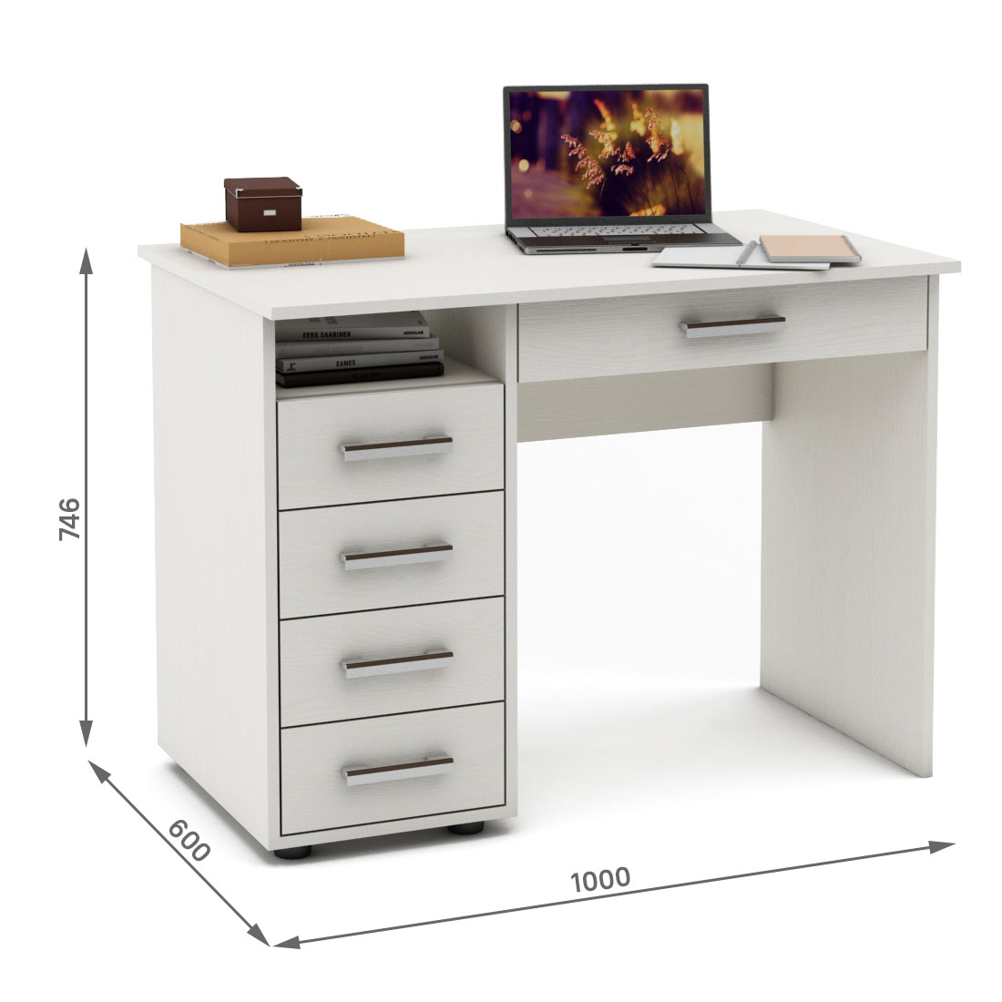 Письменный стол Остин-4 с 5 просторными ящиками - идеальное решение для организации рабочего пространства. Функциональный, стильный и прочный.