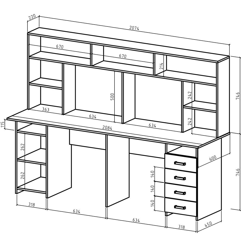 Глубина: 600 мм.