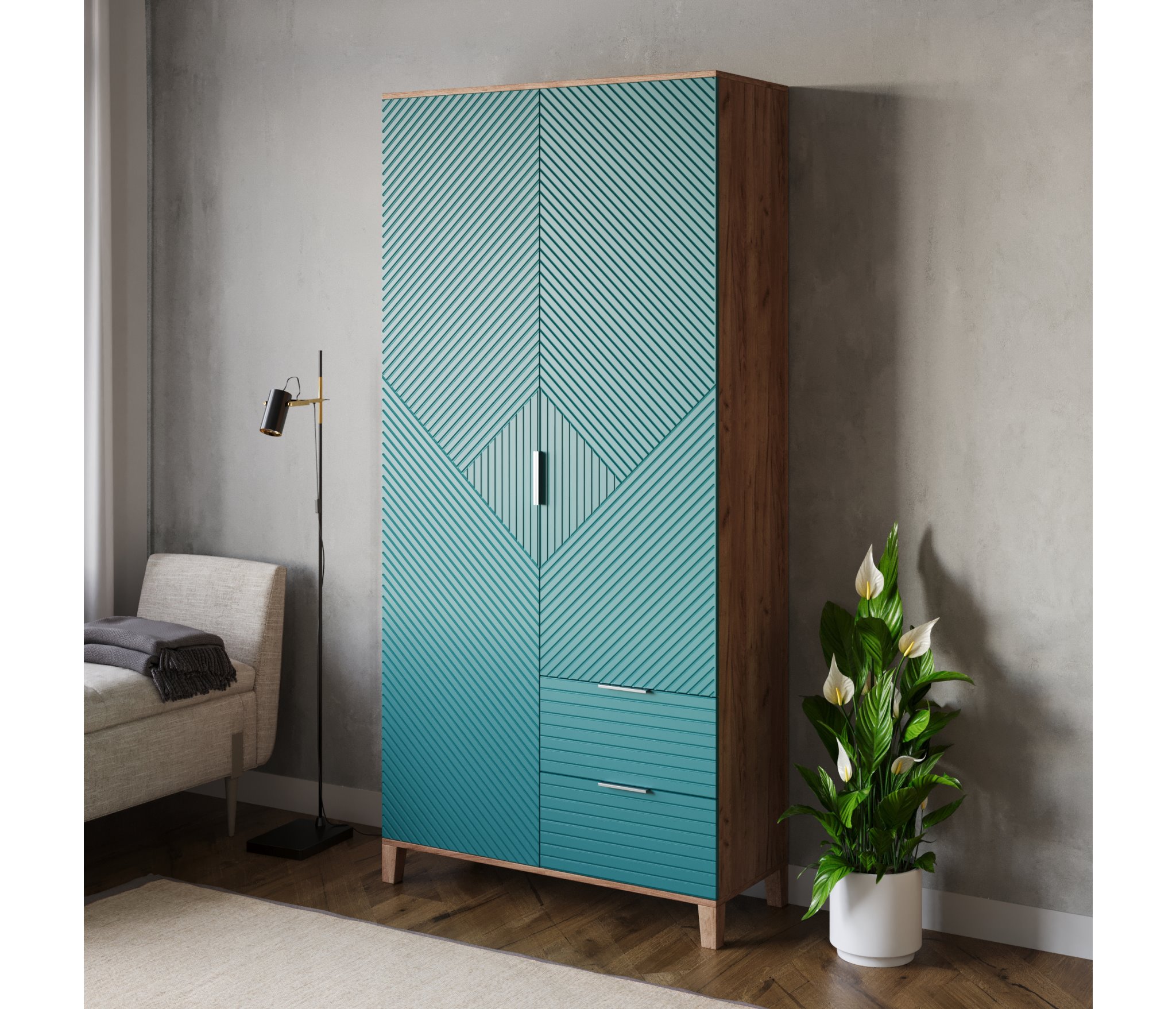 Шкафы Марвин, выполненные в скандинавском стиле, органично дополнят интерьер любой комнаты. Ножки из массива бука, геометрическая фрезеровка на фасадах, сочетание цветов отличительная черта серии Шкафов Марвин.