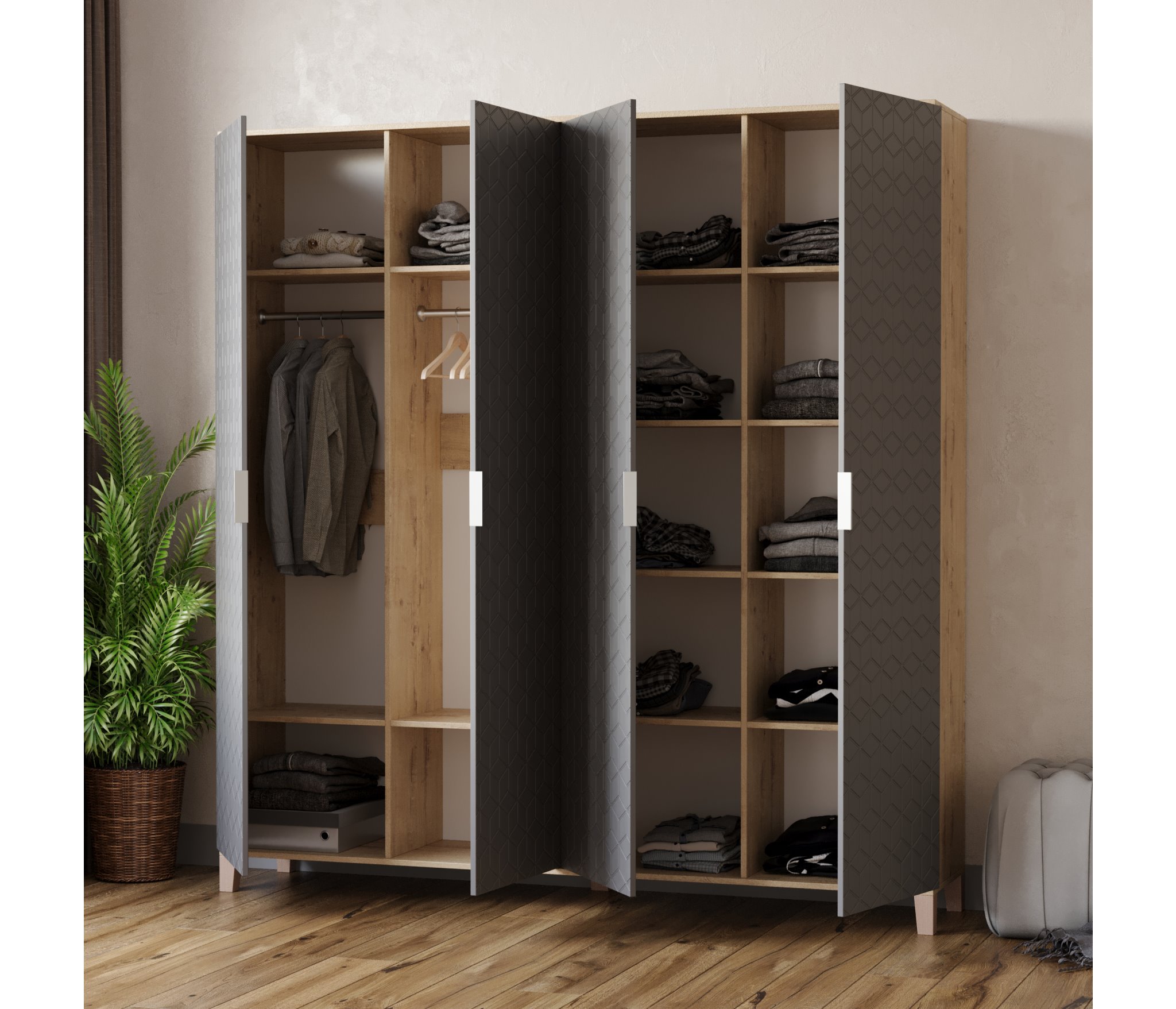Шкафы Марвин, выполненные в скандинавском стиле, органично дополнят интерьер любой комнаты. Ножки из массива бука, геометрическая фрезеровка на фасадах, сочетание цветов отличительная черта серии Шкафов Марвин.