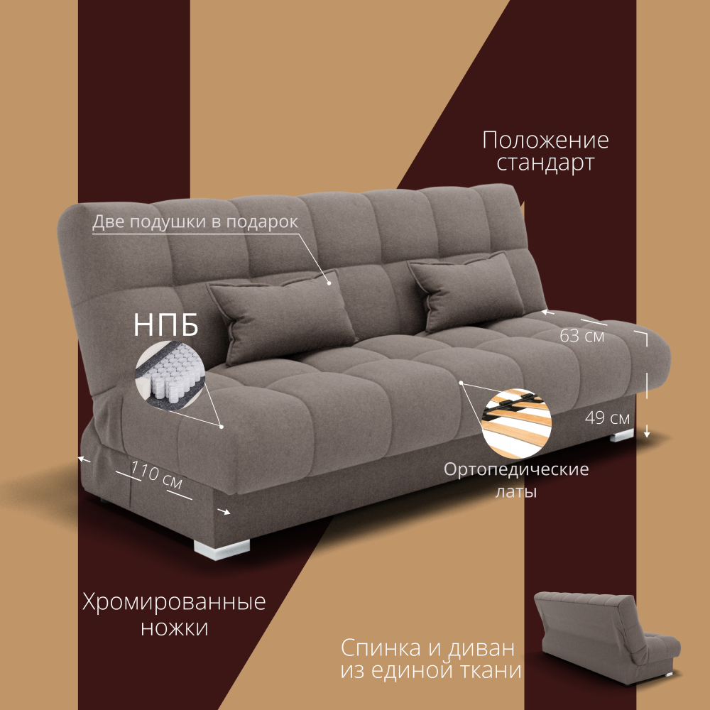 Отзывы о Столплит Прямой диван Фиеста-1, НПБ, Квест Коричнево-серый
