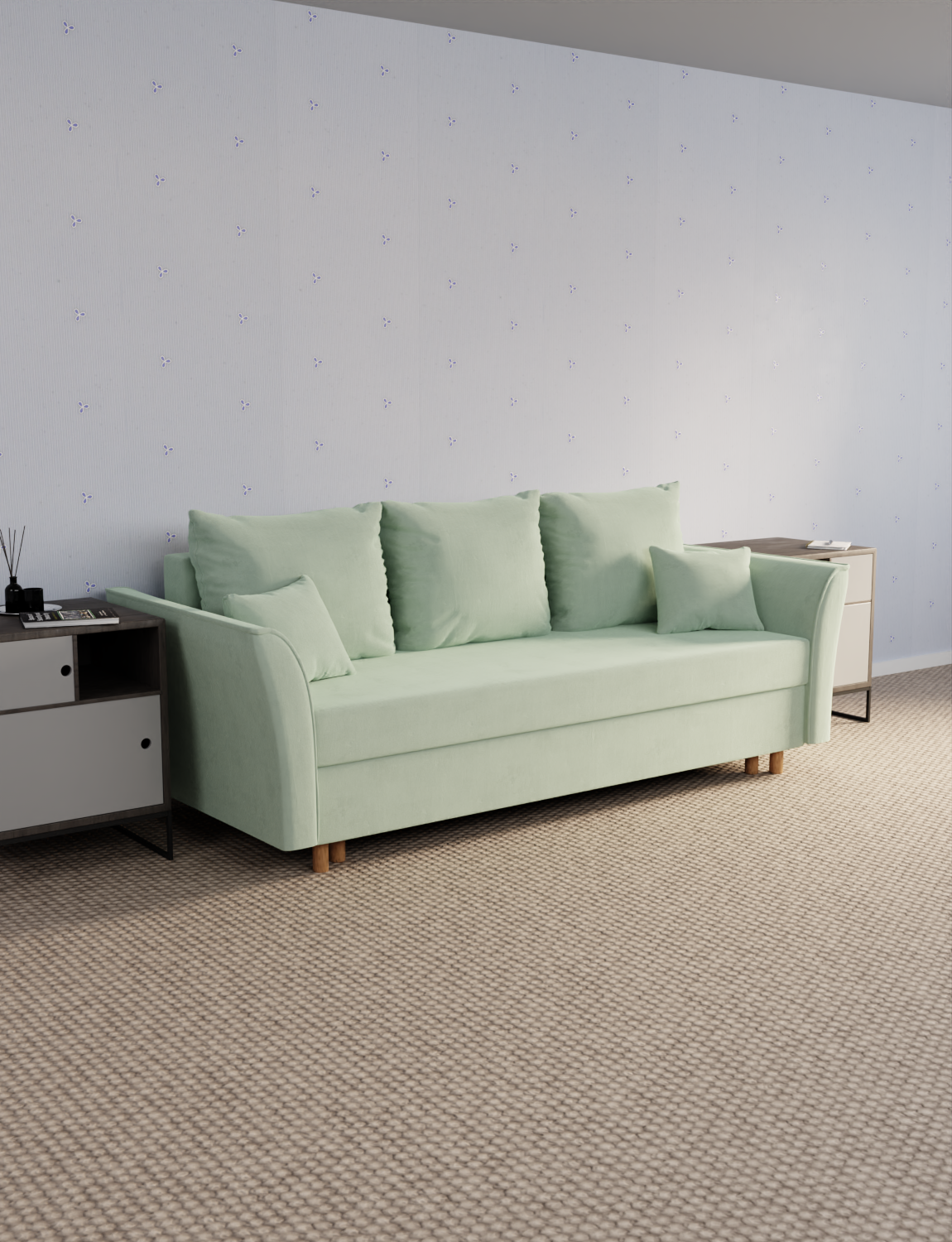 Этот диван-кровать является прекрасным решением для тех, кто ценит комфорт, стиль и универсальность. Изготовленный из прочного велюра, механизм "евро-книжка", что делает его легко трансформируемым и подходящим для любого интерьера. Благодаря съемным подушкам, диван можно легко адаптировать под ваши потребности и обеспечить дополнительное удобство. Его высота, ширина и глубина обеспечивают удобную посадку, а размеры спального места позволяют разместить до 2 человек.