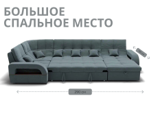 Спальное место имеет ширину 135 см и длину 290 см. Он предназначен для двух человек и имеет глубину сиденья 65 см. Максимальная нагрузка на диван составляет 280 кг.