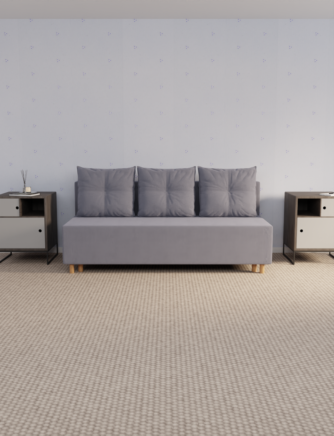 Диван-кровать имеет универсальный угол, что позволяет установить его в любой комнате, даже если она небольшая. Обивка выполнена из высококачественного велюра, который не только выглядит стильно, но и легко чистится.