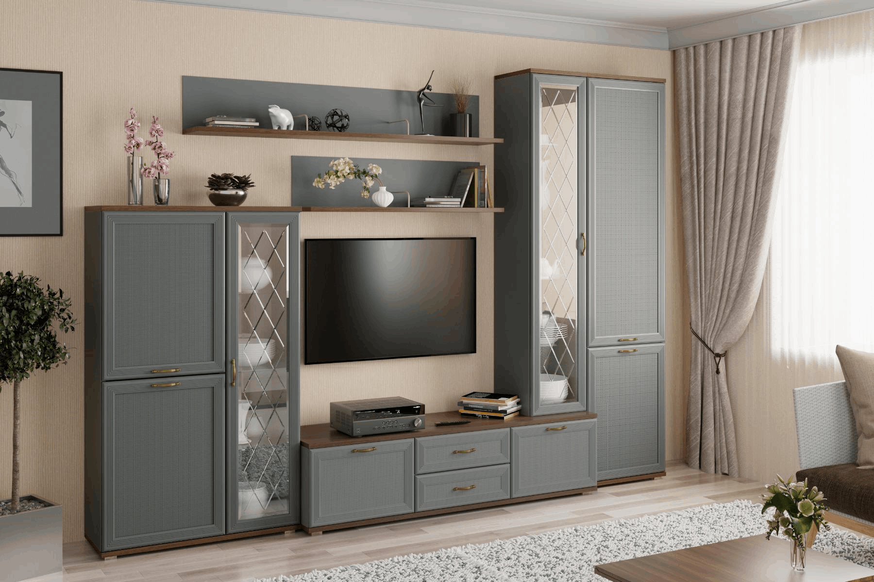 Гостиная Карина ГК-1001 (Гикори Джексон тёмный/Серый Оникс) Код I0000452639