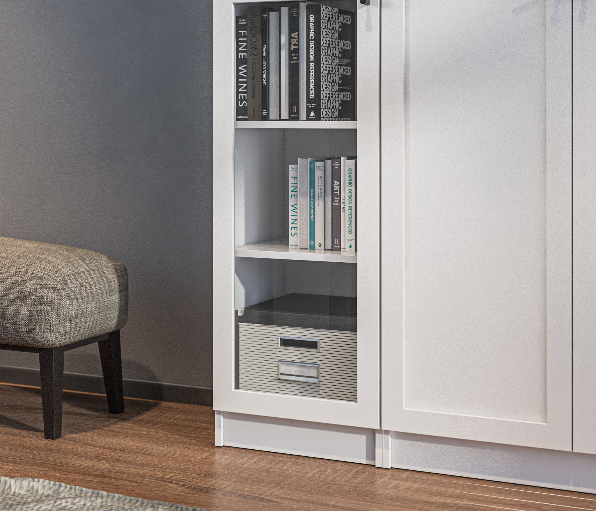 Твин СБ-3374 Фасад со стеклом Белый