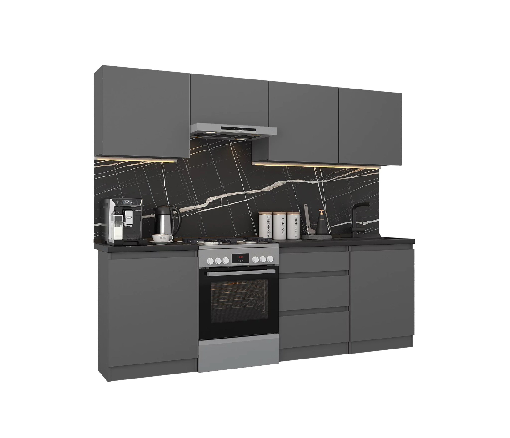 Обратите внимание, что столешница, стеновая панель, мойка и смеситель не входят в комплектацию кухни Леон и приобретаются отдельно. Это позволяет вам выбрать идеальные аксессуары и элементы для создания индивидуального дизайна вашей кухни.