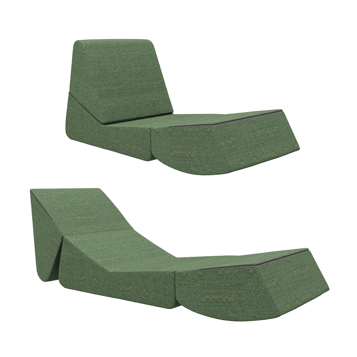 Стильное бескаркасное кресло имеет 3 положения для отдыха.