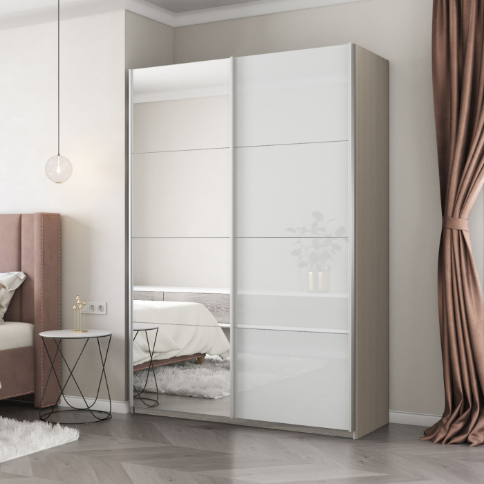 Шкаф-купе Прайм 2-х дверный Зеркало/Стекло белое/Доводчики 120х57х230 (Ясень Анкор светлый)