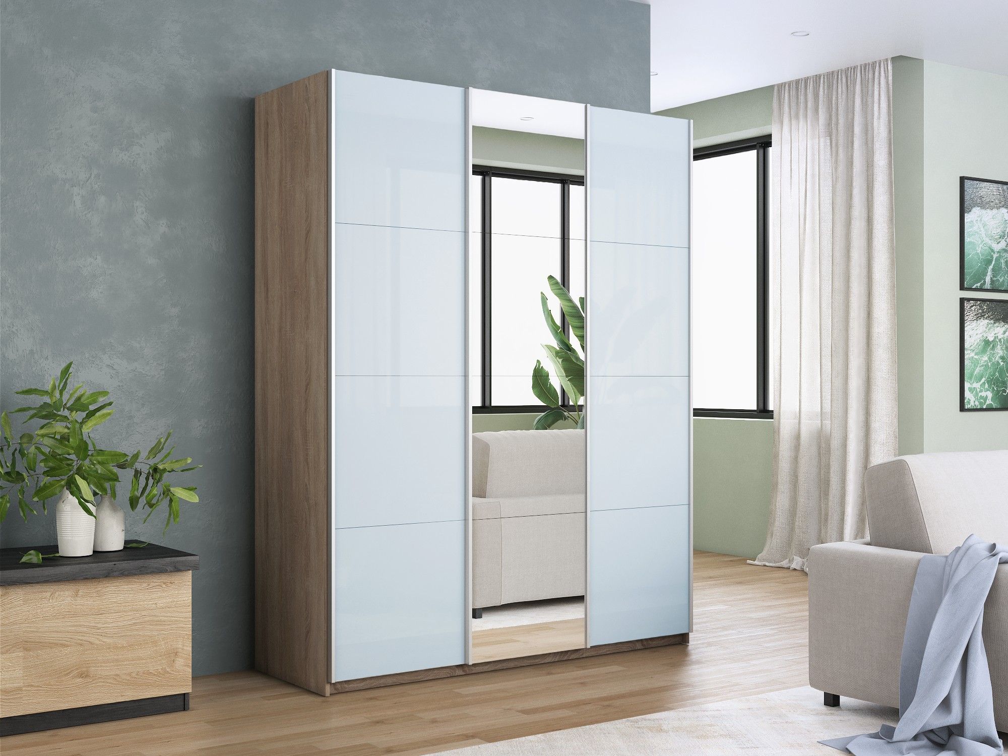 Отзывы о Столплит Шкаф-купе Прайм 3-х дверный Стекла белые/Зеркало/Доводчики 210х57х230 Дуб сонома