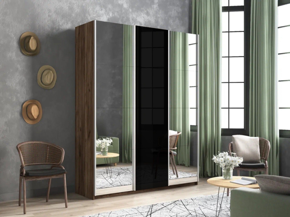 Отзывы о Столплит Шкаф-купе Прайм 3-х дверный Зеркала/Стекло черное/Доводчики 210х57х230 Дуб/крафт/табак