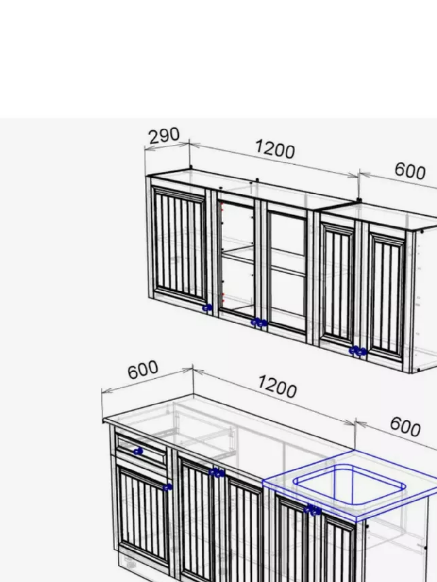 Количество верхних шкафов: 2