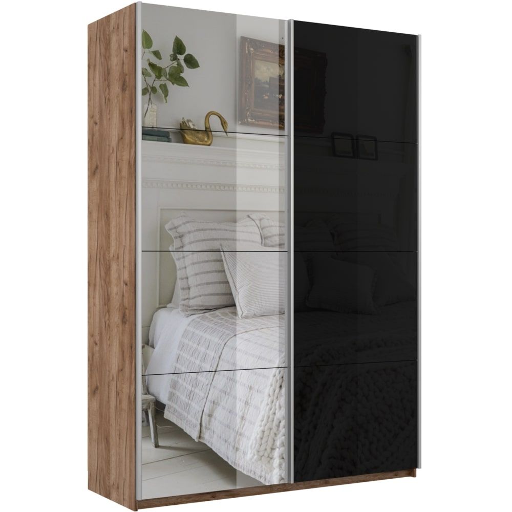 Отзывы о Столплит Шкаф-купе Прайм 2х дверный Зеркало/Стекло черное 120х57х230 Дуб/крафт/табак