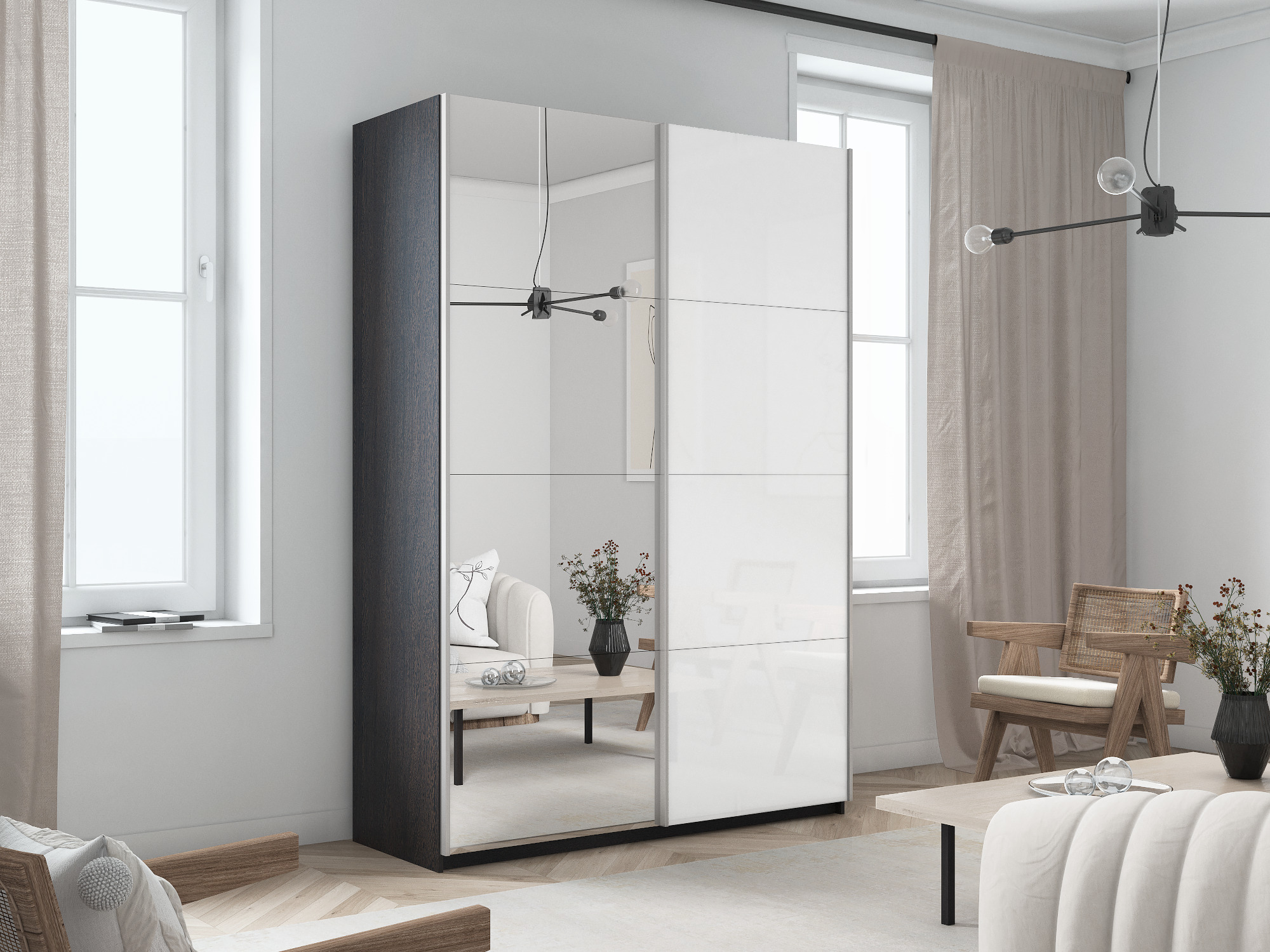 Отзывы о Столплит Шкаф-купе Прайм 2х дверный Зеркало/Белый Глянец 120х57х230 Венге