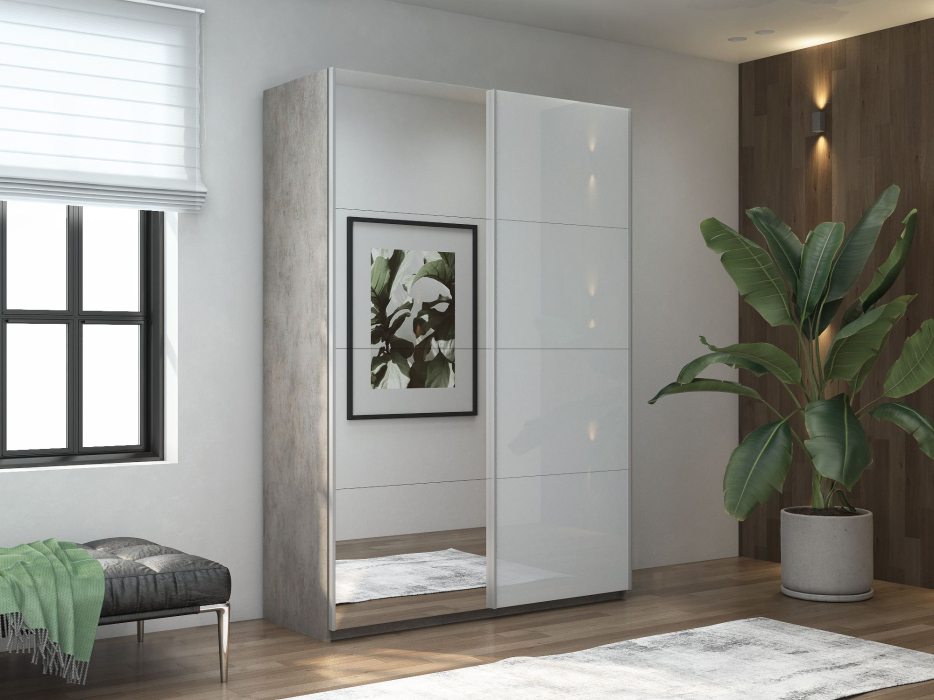 Шкаф-купе Прайм 2х дверный Зеркало/Белый Глянец 140х57х230 (Бетон)