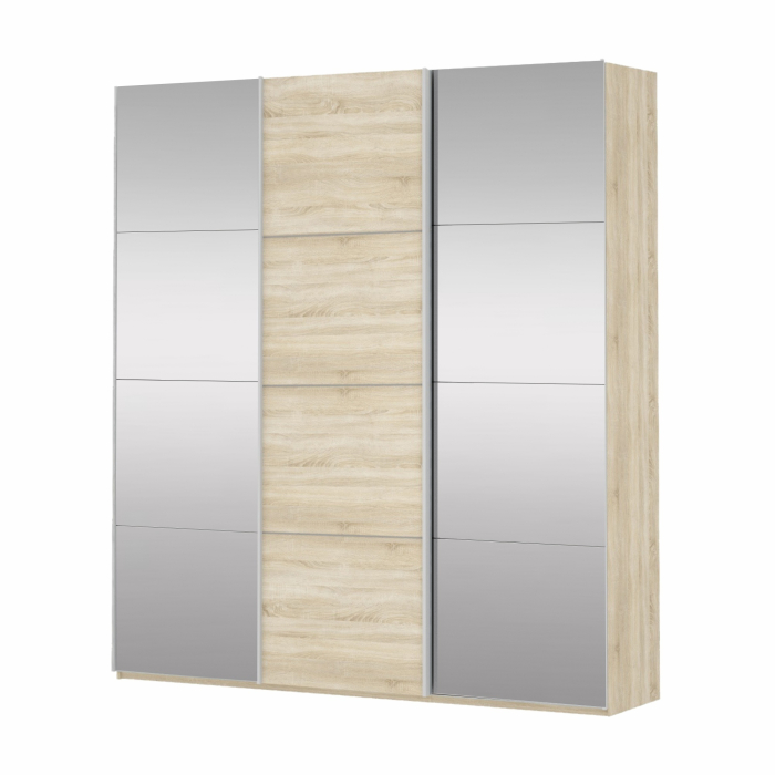 Шкаф Прайм трио 1ДСП+2 зеркало 2300х2100х570 (Дуб Сонома)