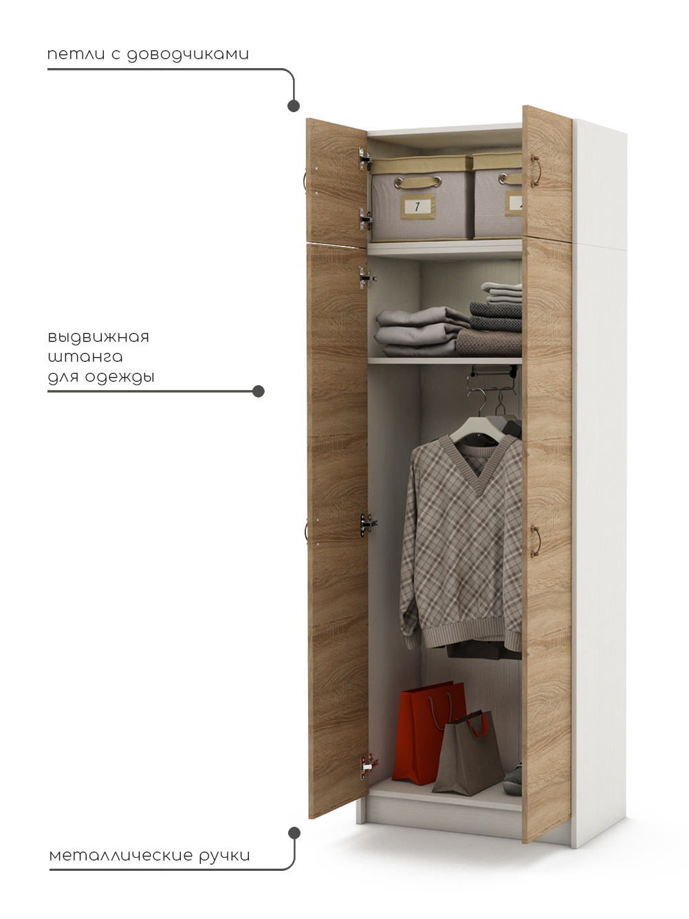 Вы ищете идеальный шкаф для хранения своей одежды? Деревянный распашной шкаф Август — идеальное решение для вас! Этот шикарный шкаф обладает всеми необходимыми функциями и станет прекрасным дополнением к вашей комнате, прихожей или даже балкону. Деревянный распашной шкаф — это не только функциональное, но и элегантное решение для хранения вашей одежды. Он изготовлен из качественной ЛДСП, что делает его прочным и надежным. Вы можете быть уверены, что этот шкаф прослужит вам долгие годы. Особенностью этого шкафа является его уникальная конструкция. Распашные двери позволяют легко получить доступ к вашей одежде, а полки, вешалка и ящики создают идеальную организацию внутри шкафа. Вы сможете легко найти нужную вещь без лишних усилий. Распашной шкаф также прекрасно подходит для различных помещений. Он стильно впишется в вашу комнату, придаст прихожей элегантность и даже может быть использован на балконе для хранения сезонной одежды. Это универсальное решение, которое подойдет для любого интерьера. Мы понимаем, что вы цените не только функциональность, но и внешний вид мебели. Распашной шкаф имеет элегантный дизайн с привлекательными деталями. Он добавит шарма и стиля в вашу комнату, прихожую или балкон. Кроме того, мы предлагаем широкий выбор цветов и отделок шкаф для одежды. Вы сможете выбрать подходящий вариант, который лучше всего соответствует вашему интерьеру и личным предпочтениям. Деревянный распашной шкаф для одежды — это не просто шкаф, это инвестиция в ваш комфорт и организацию. Выберите шкаф Август и наслаждайтесь его преимуществами уже сегодня!