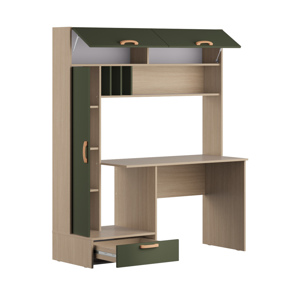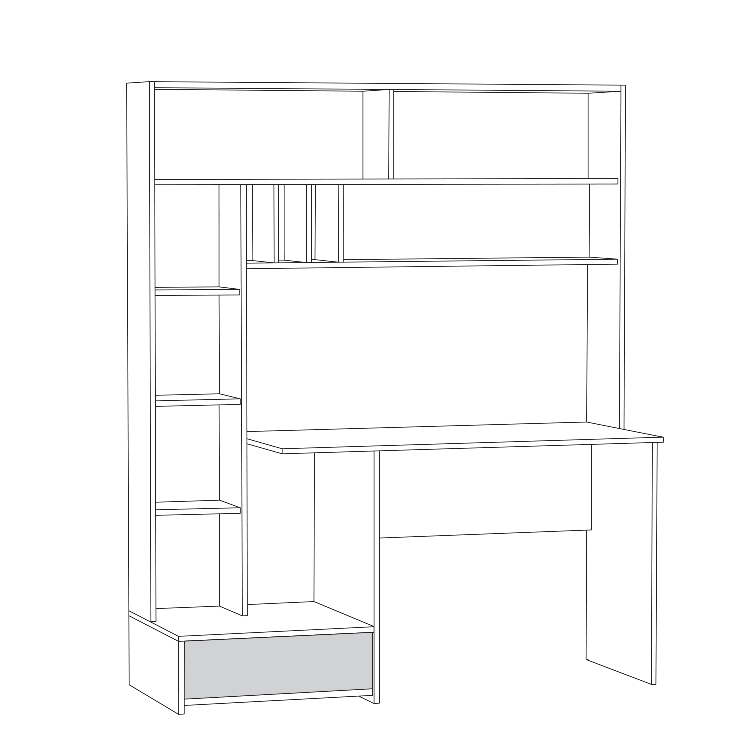 Большая столешница удобна для работы, а надстройка над ней поможет держать учебные принадлежности или необходимые для работы документы на расстоянии вытянутой руки.