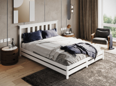 Двуспальная кровать "IRINA" ОЧЕНЬ КРЕПКАЯ так как усилена двойными рейками 20*90 мм по всем сторонам кровати. Благодаря 5 опорным стойкам по середине двуспальной кровати устойчивость повышена, чтобы выдерживать максимальный вес 200 кг.