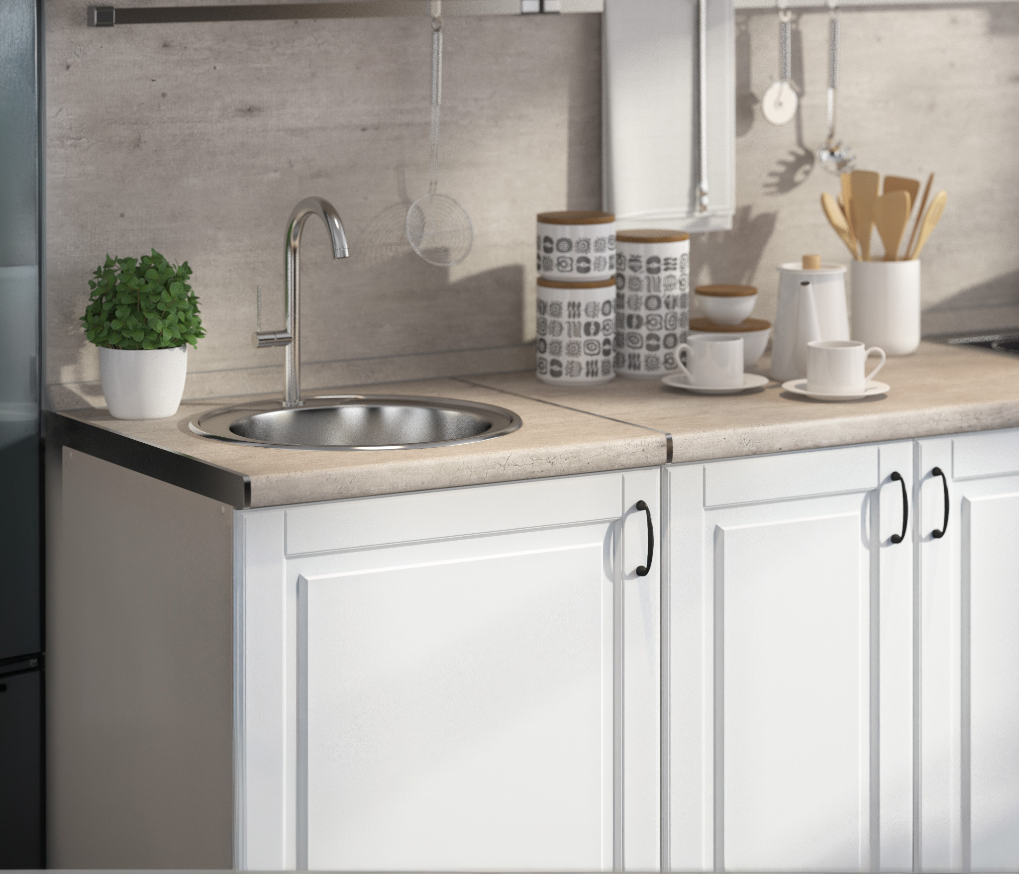– Мойка приобретается отдельно, так же как и комплектующие для столешницы: торцевые планки (для обработки краёв) и стыковочная планка (для соединения двух столешниц).