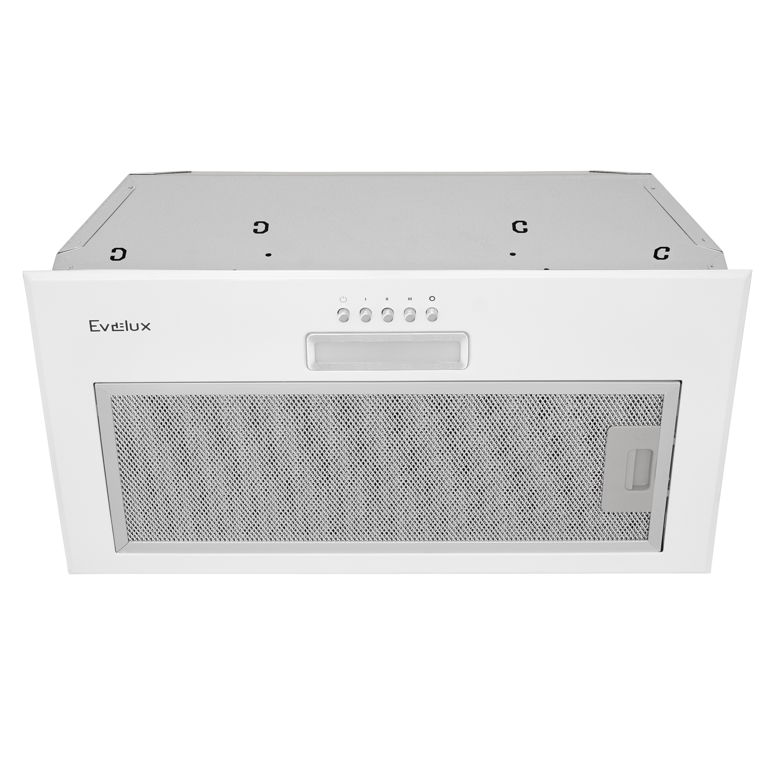 Встраиваемая вытяжка, полновстраиваемая в шкаф, 60 см, отвод/циркуляция, механический контроль, 3 скорости работы, производительность 750 м³/ч, LED освещение, металл, белый,525x291х276 мм.