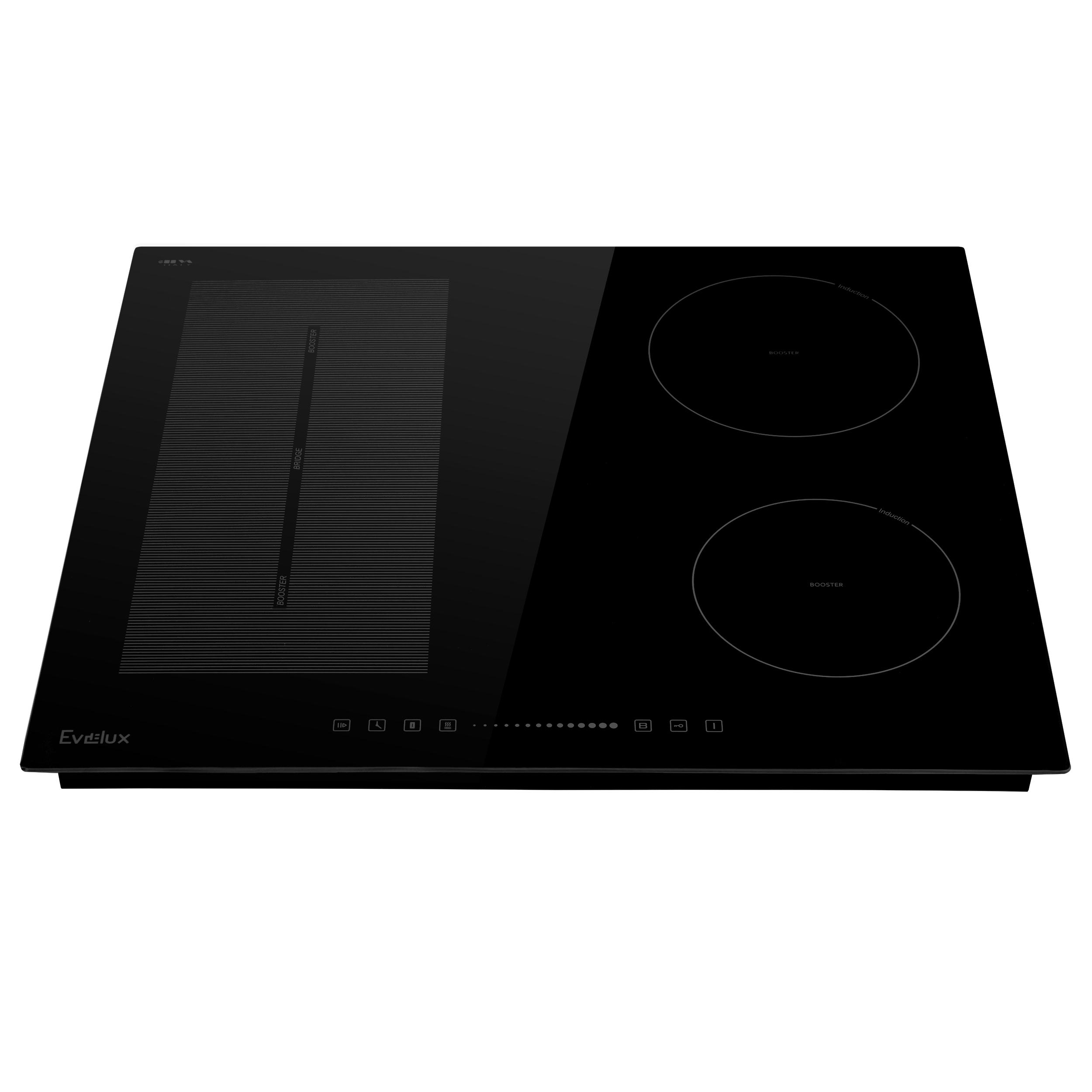 Варочная панель электрическая, индукция, 60 см, 4 конфорки с функцией Booster, сенсорное слайдерное управление, 9 уровней мощности, таймер 1-99 мин, индукционный мост, блокировка управления, защита детей, защитное отключение, функция "пауза", функция поддержания тепла, 7200 Вт, черное стекло, ILVA (Италия), 590 x 520 x 62 мм.