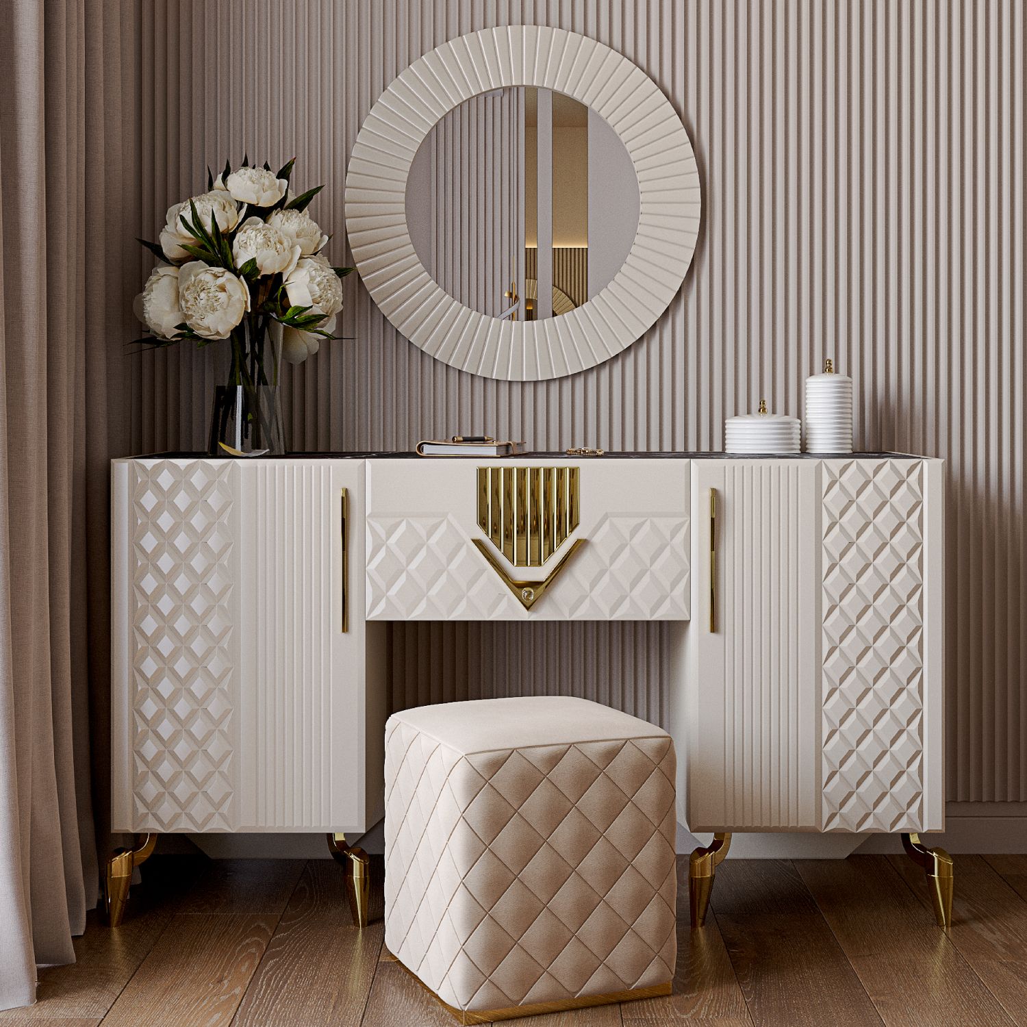 Пуф — это не только удобная мебель, но и стильный аксессуар. Пуф в прихожую подчеркнёт вашу индивидуальность, а пуф для туалетного столика добавит элегантности. Пуф круглый в таком исполнении станет прекрасным дополнением любого интерьера.
