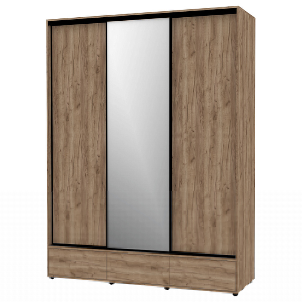Шкаф-купе 3-дв MOD 1800 зеркало/лдсп (в2390*ш1800*г620) (Табачный дуб) Код I0000451066