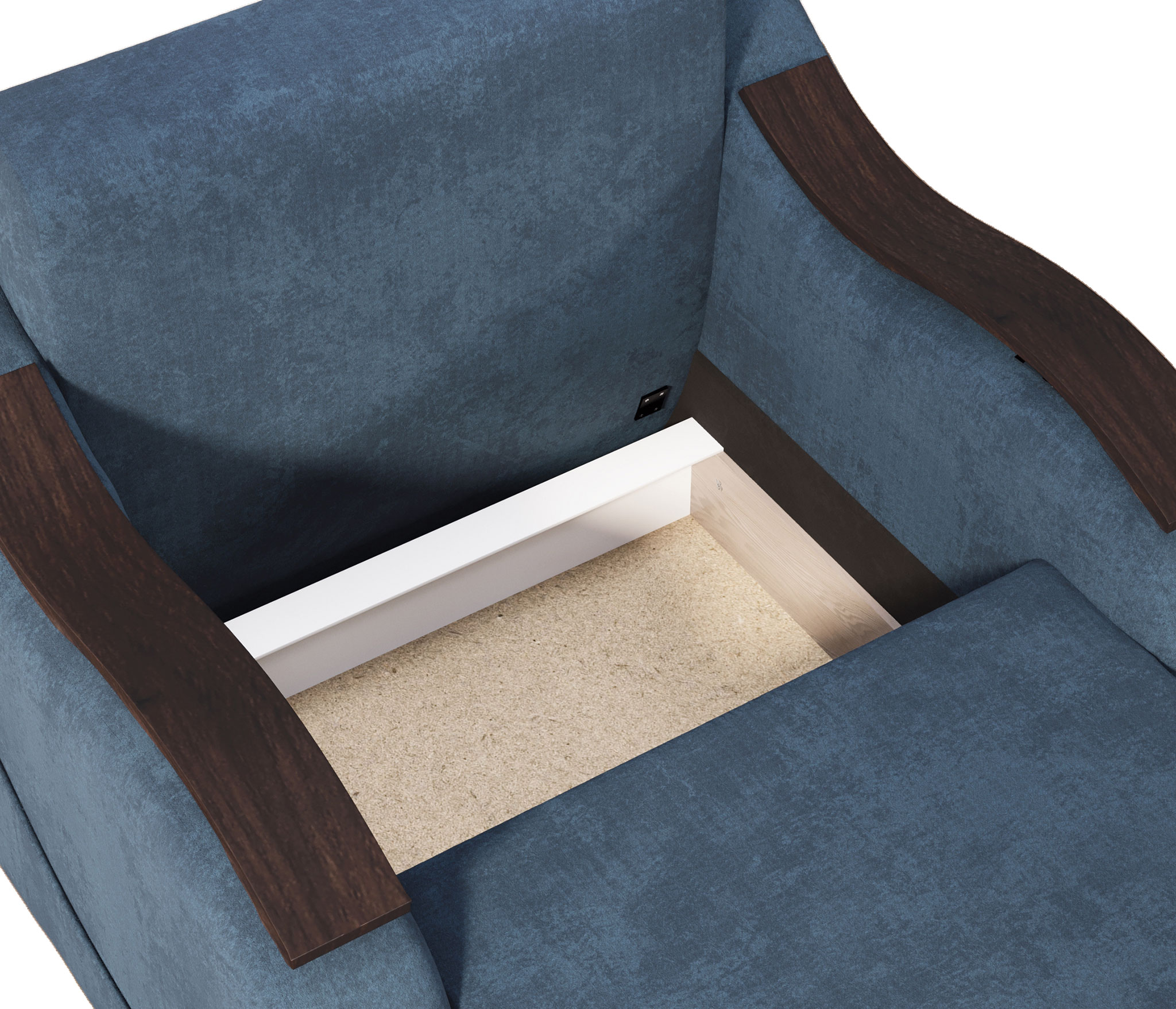 Под сиденьем расположен бельевой ящик, удобный для хранения постельных принадлежностей, пледов и других необходимых вещей.