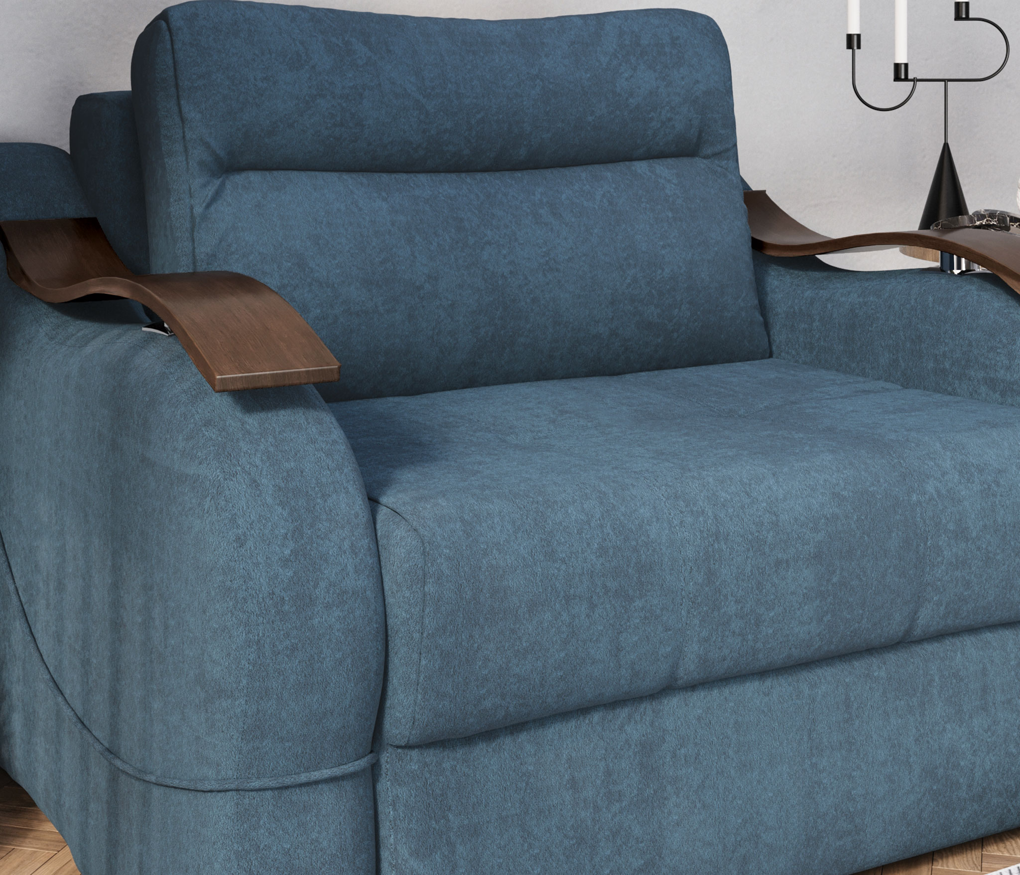 В подлокотниках предусмотрены декоративные вставки из МДФ, которые подчёркивают современный дизайн и визуально облегчают конструкцию.