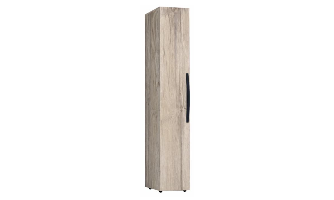 Шкаф-пенал для хранения белья в спальню: компактное решение для небольших помещений. Регулируемые полки позволяют удобно разместить постельное белье, одеяла и подушки. Гладкие фасады и натуральный декор создают уютную атмосферу в комнате.