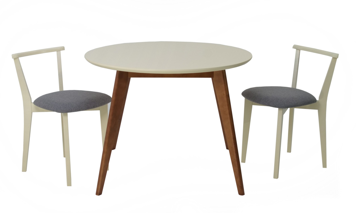 Комплект из деревянного стола Сканди на каркасе из натурального дерева и 2 стула Франк отлично подойдет к интерьеру, выдержанному в скандинавском стиле. Данный комплект станет центральным элементом в гостиной, столовой зоне, на кухне, позволив создать уютное обеденное место, где смогут собираться члены дружной семьи и их гости.У модели круглая форма столешницы. Такое решение исключит риск сколов и обеспечит безопасность, в том числе, детям.Комплект выполнен в красивой комбинации цветов - орех, слоновая кость. Сочетание изысканного дизайна и высокого качества исполнения - главная особенность комплекта.Столешница выполнена из материалов с великолепными эксплуатационными свойствами - МДФ (Материал создается на основе натуральной древесины. Практичен, надежен, имеет однородную гладкую структуру), шпон.Мебель проста в уходе - для поддержания первозданного вида достаточно использовать простую чуть влажную салфетку по мере необходимости.Состав комплекта:- стол F004111WUS- стулья R101709S01