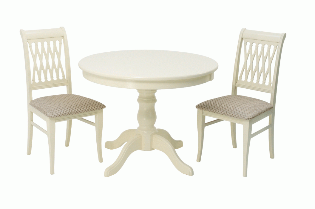 Комплект из деревянного стола Брамс на каркасе из натурального дерева и 2 стула Рич отлично подойдет к интерьеру, выдержанному в классическом стиле. Данный комплект станет центральным элементом в гостиной, столовой зоне, на кухне, позволив создать уютное обеденное место, где смогут собираться члены дружной семьи и их гости.У модели круглая форма столешницы. Такое решение исключит риск сколов и обеспечит безопасность, в том числе, детям.Комплект выполнен в красивом  цвете - слоновая кость. Сочетание изысканного дизайна и высокого качества исполнения - главная особенность комплекта.Столешница выполнена из материалов с великолепными эксплуатационными свойствами - МДФ (Материал создается на основе натуральной древесины. Практичен, надежен, имеет однородную гладкую структуру), шпон.Мебель проста в уходе - для поддержания первозданного вида достаточно использовать простую чуть влажную салфетку по мере необходимости.Состав комплекта:- стол F001001S00- стулья R001401S12