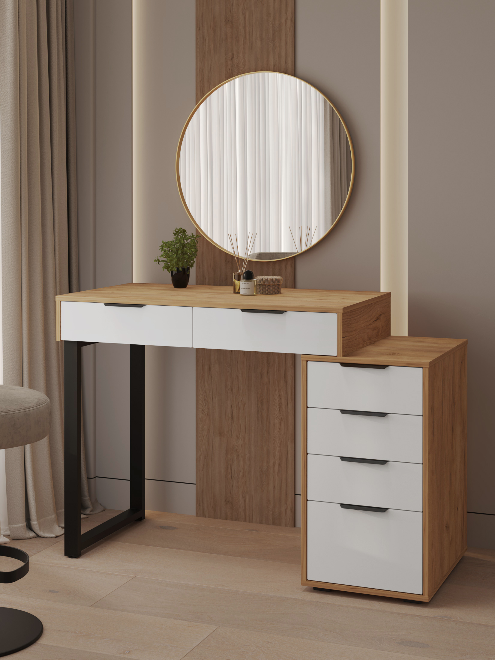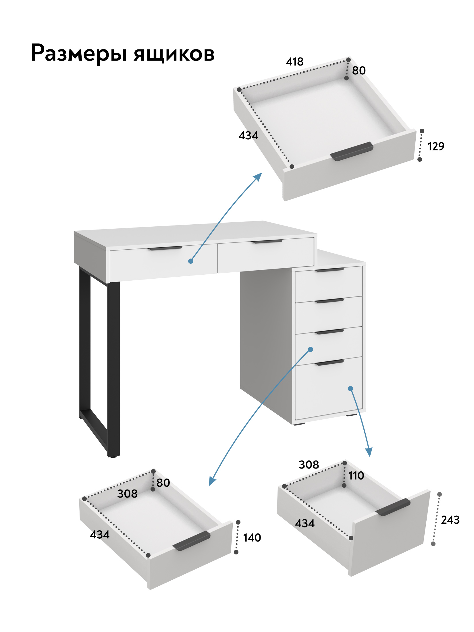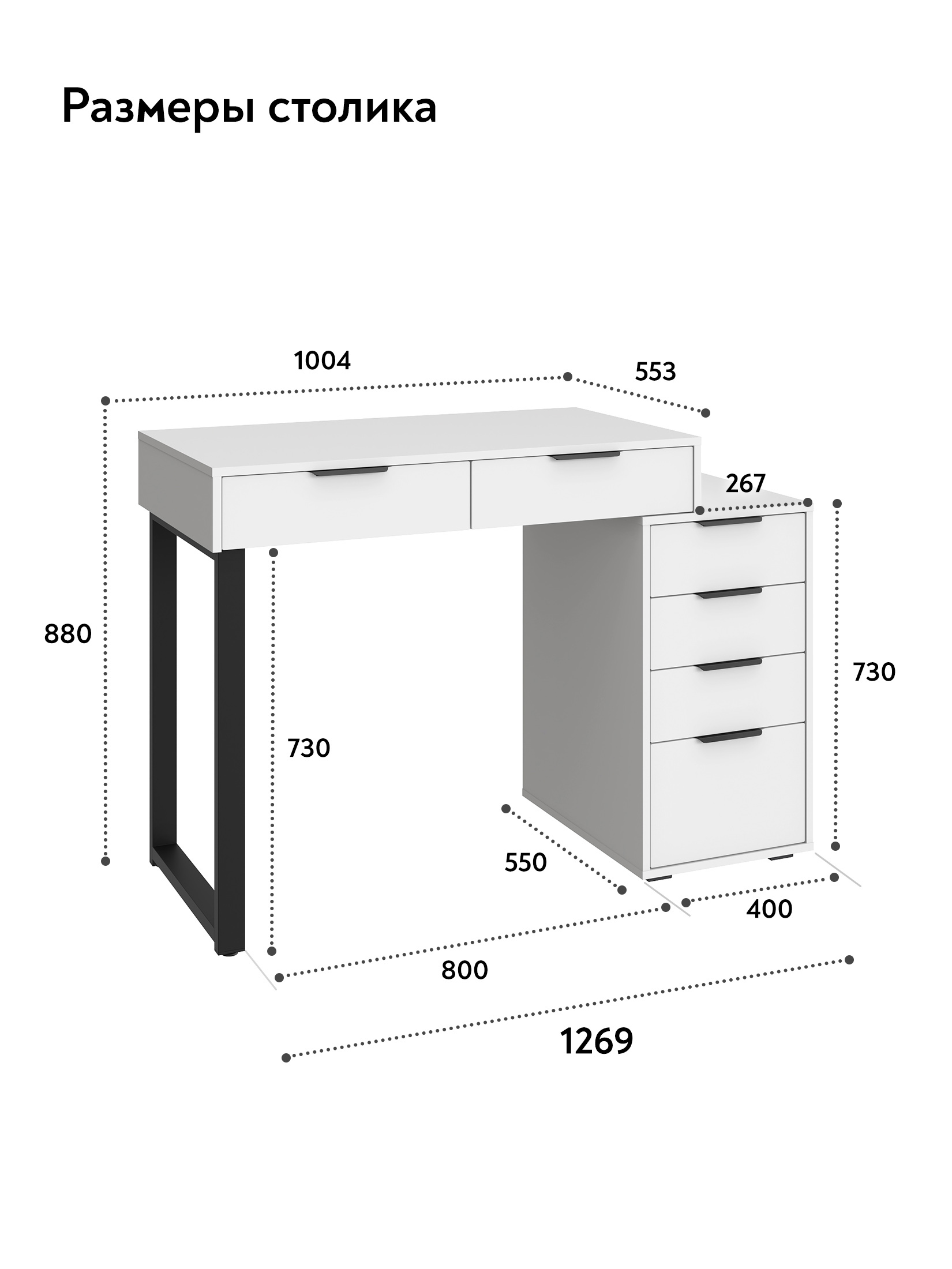 Универсальность: подходит для использования в качестве письменного, компьютерного или маникюрного стола. Рекомендуется высокий стул. Фурнитура: телескопические направляющие полного выдвижения без доводчиков, металлические ручки и опора.