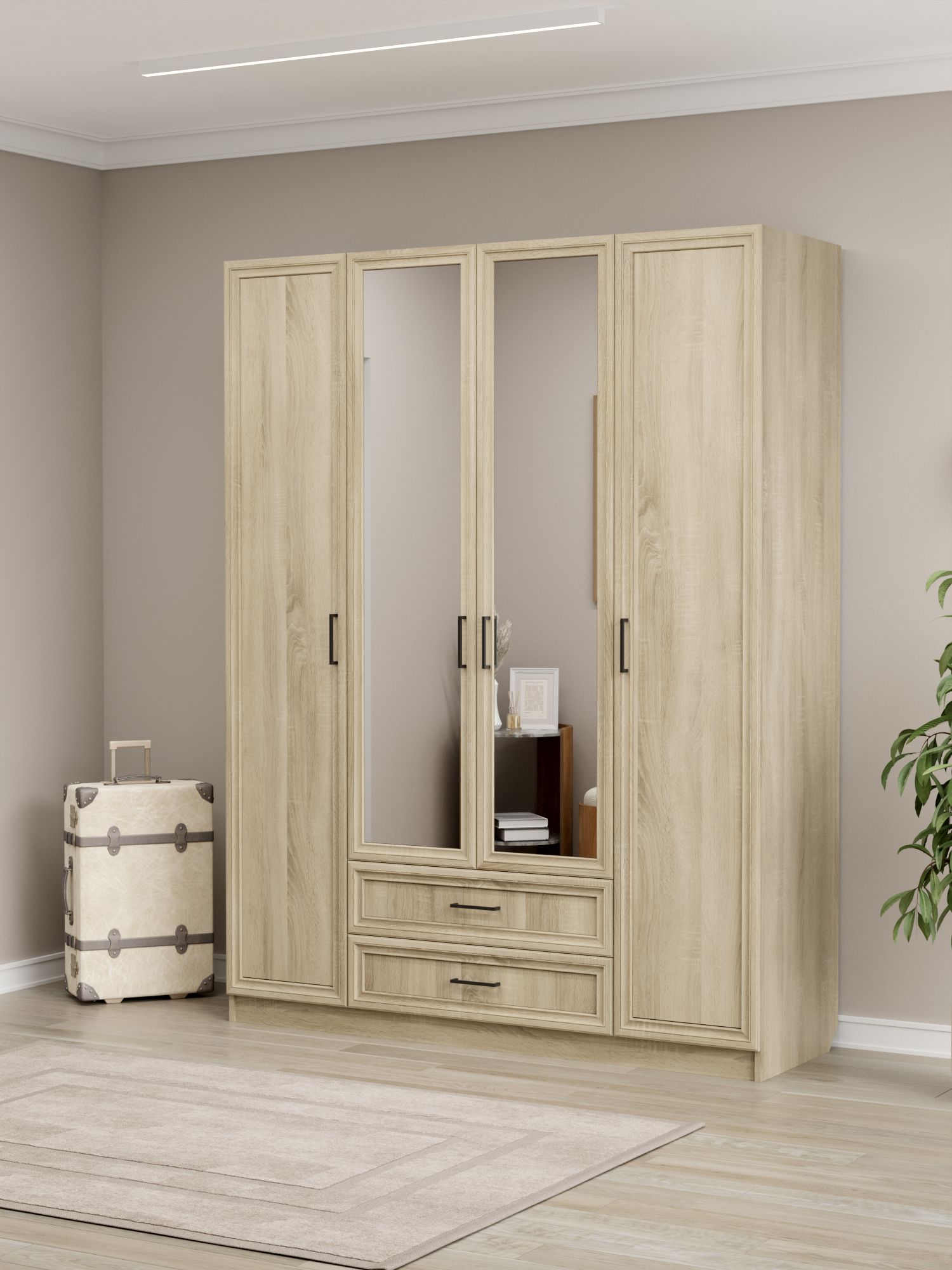 Шкаф распашной InHouse ШК‑4/2 — вместительное решение для организации хранения в спальне, прихожей или гардеробной. Модель сочетает четырёхстворчатое отделение для одежды с многочисленными полками, обеспечивая эффективное использование пространства. Сочетание МДФ на фасадах и ЛДСП в корпусе придаёт изделию эстетичность и надёжность, а лаконичный дизайн органично вписывается в современные интерьеры.