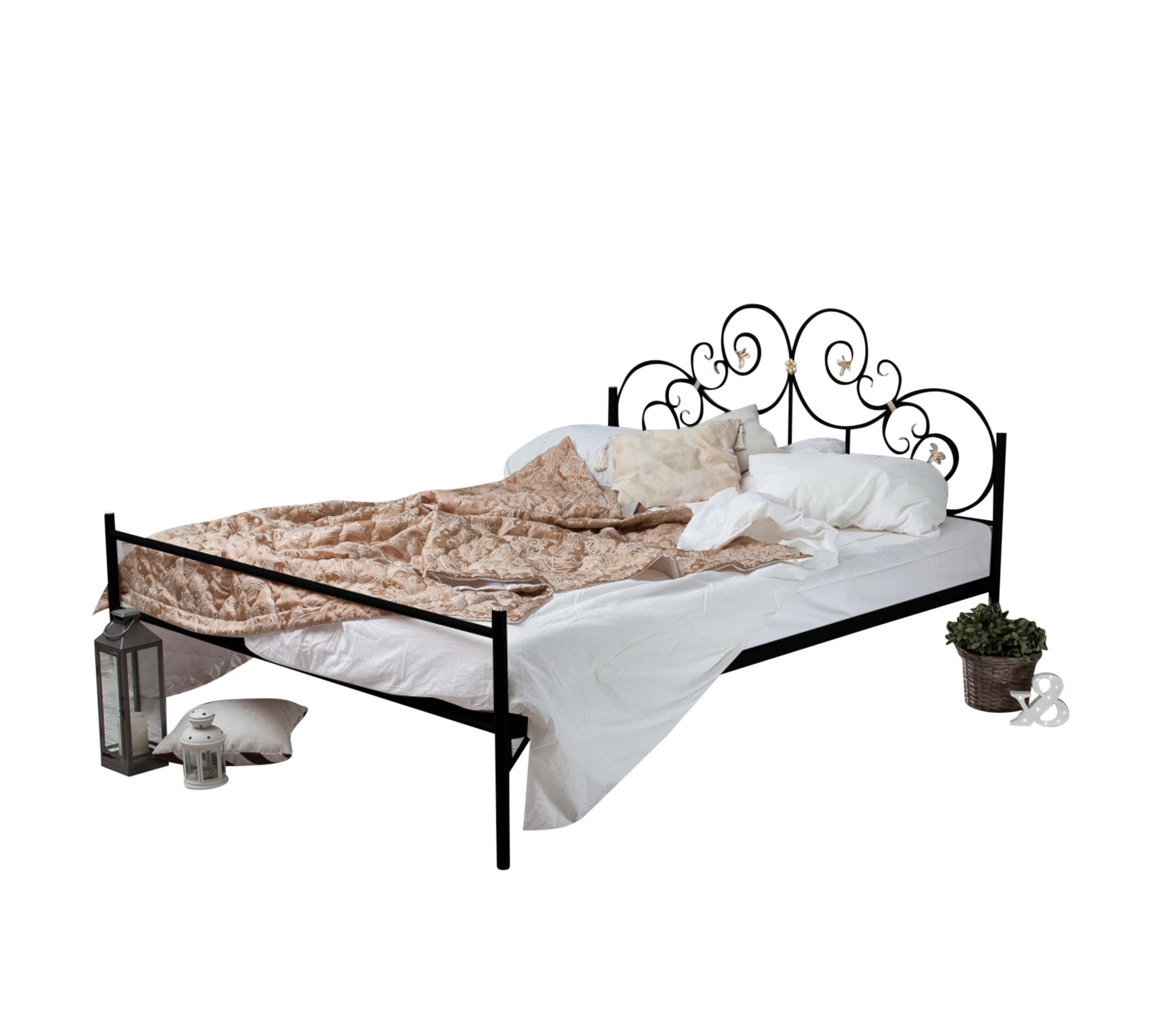 Роскошное оформление изголовья и изножья, кристально чистый белый или благородно черный цвет и легкость и воздушность конструкции сделают ее настоящим украшением спальной комнаты как в современной, так и в классической стилистике.