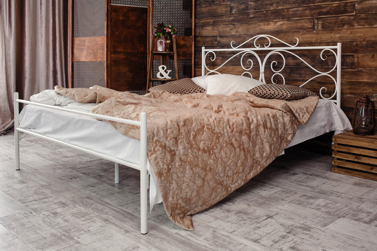 Воздушность и изысканность кованой кровати Валенсия прекрасно сочетаются с ее долговечность и надежностью, обеспеченными качественными и прочными материалами изготовления.