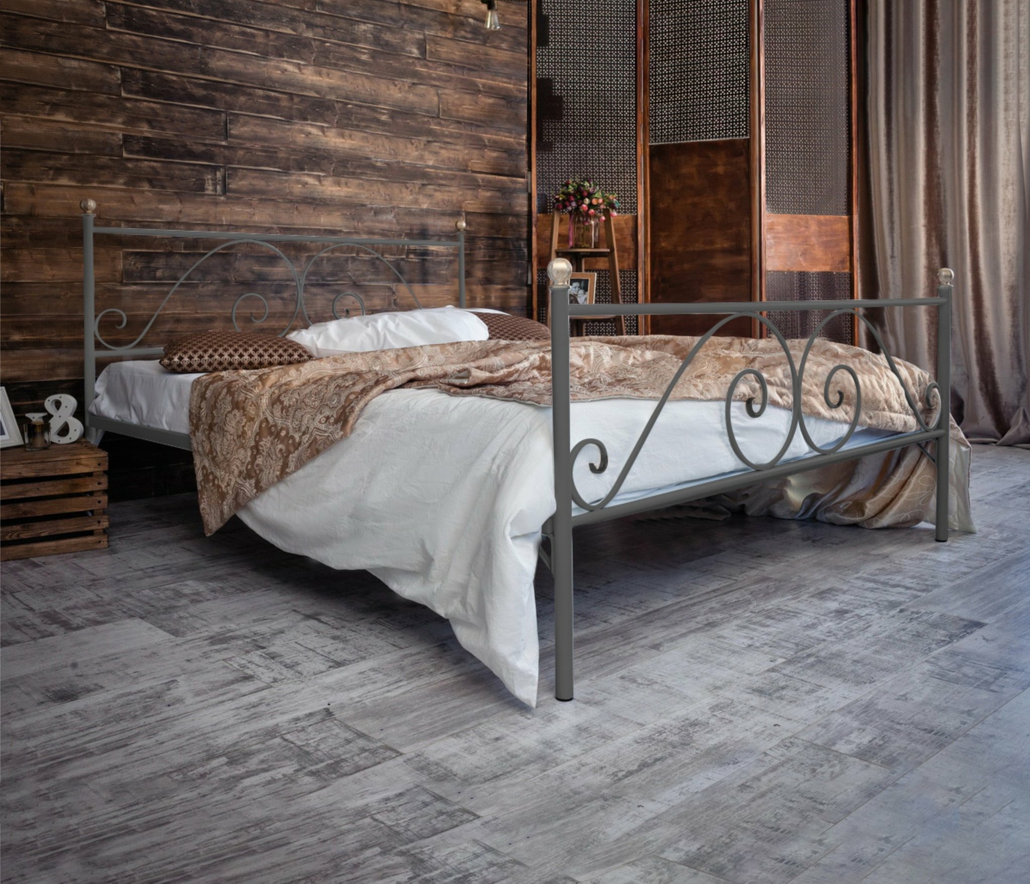 Кованая кровать Анталия 1.6 с двумя спинками (Серый)