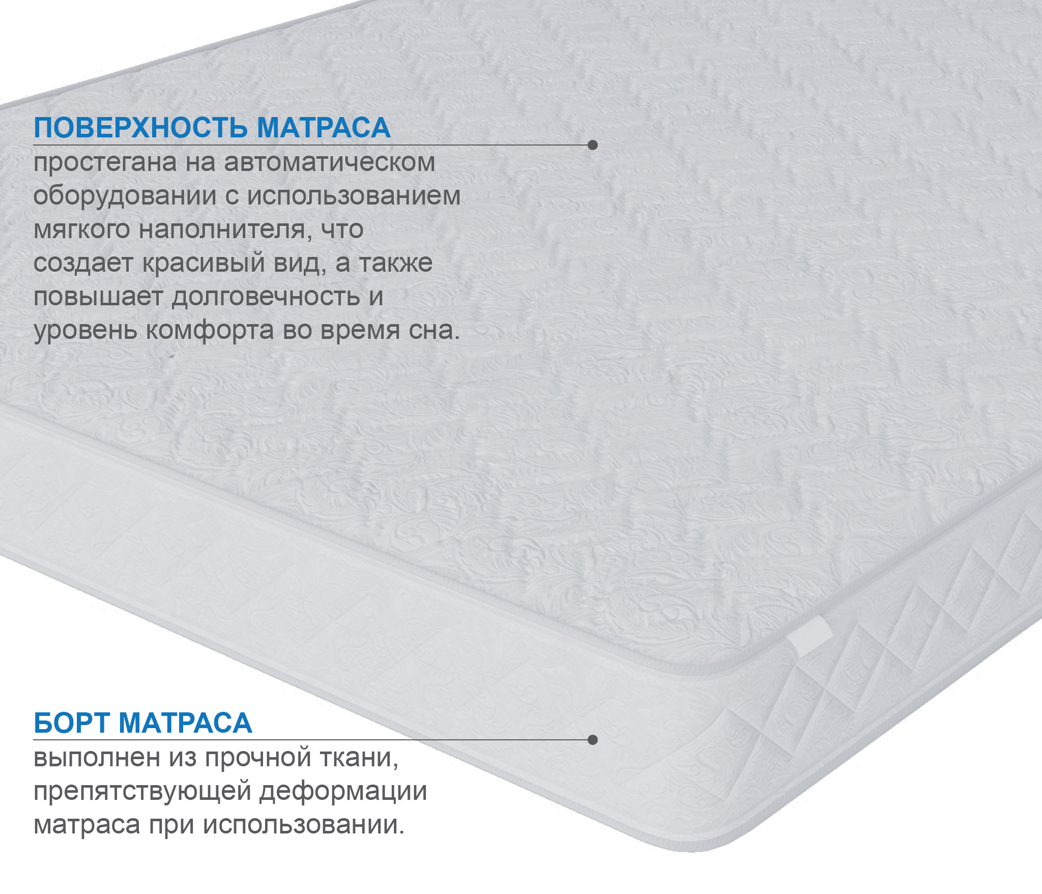 Уникальный бесклеевой и беспружинный матрас, в основе которого лежат передовые технологии умных пен. Данная пена прочная и долговечная, благодаря высокой плотности пены. Чтобы матрас не был чрезмерно жестким, обе стороны матраса перфорированы специальным образом. У нас получилось придать матрасу оптимальную жесткость, не снижая плотности пены.