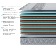 Отличный выбор для людей с весом выше среднего. Это жесткий беспружинный матрас, в состав которого входят как искусственные, так и натуральные материалы. В качестве наполнителя матраса используются 5 слоев латексированной кокосовой койры. Это натуральный материал на основе кокосового волокна, пропитанного натуральным латексом, а также листы высокоэластичной пены. Оба материала жесткие, упругие и очень долговечные. При этом матрас подходит для кроватей с подъемным механизмом. Это идеальный матрас для людей желающих поправить здоровье, улучшить сон и уменьшить боли в суставах. При выборе матраса следует помнить о том, что любой матрас не отвечает за правильность положения головы и шеи, их здоровье зависит от правильно подобранной ортопедической подушки. Для увеличения срока службы матраса рекомендуется его использование с защитным чехлом AquaStop.