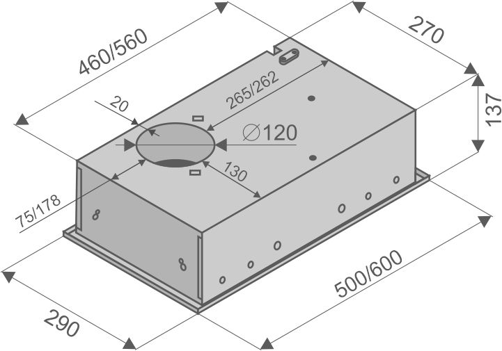 Особенности: Поверхность вытяжки полностью закрывает нижнюю полку, возможность монтажа вытяжки вместо нижней полки.