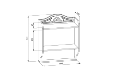 Полка из трех горизонтальных сегментов.Высота бокового борта верхнего сегмента 95 мм, среднего 340, нижнего 186 мм. Ширина верхней полки 259 мм, средней 243 мм, нижней 112 мм.