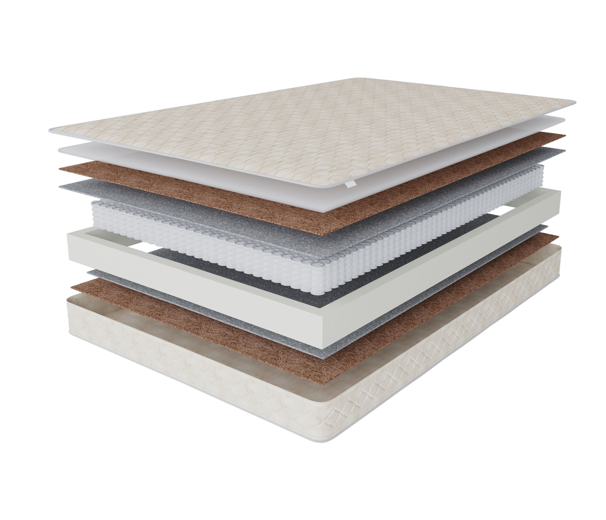 - латексированный кокос - компонент, лежащий в основе комфортного слоя. Материал помогает распределять вес пользователя и придает изделию требуемую жесткость;