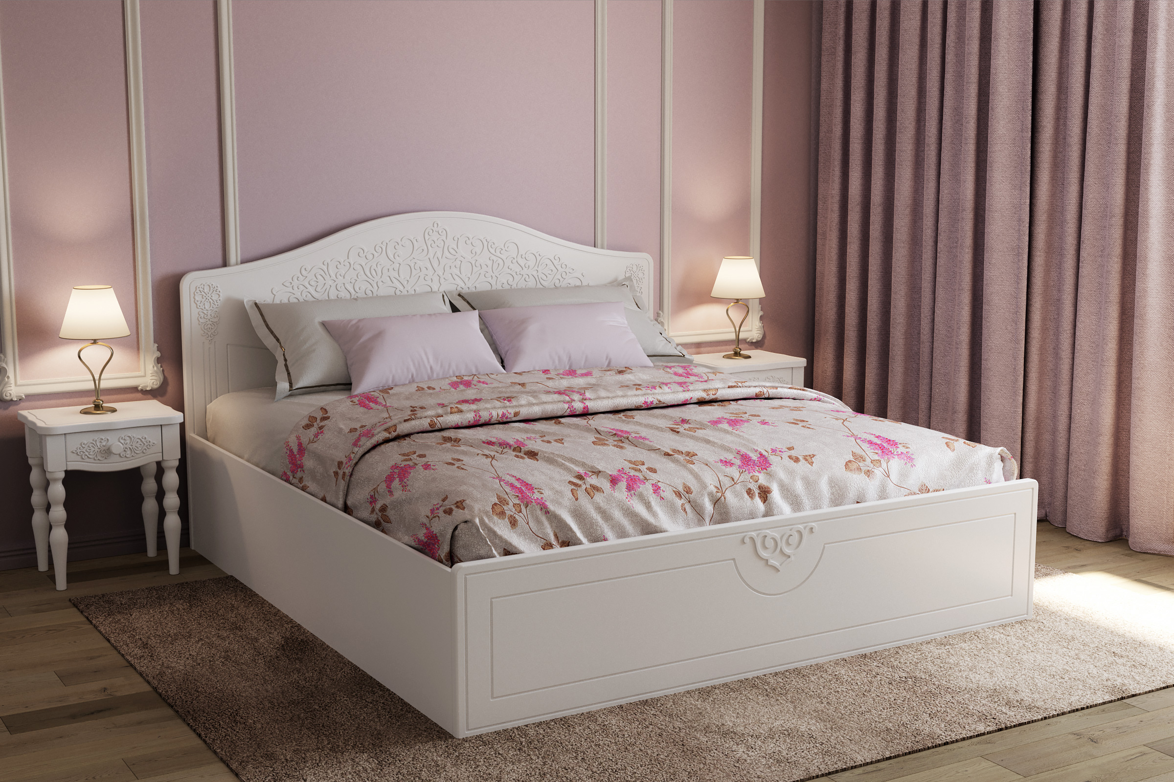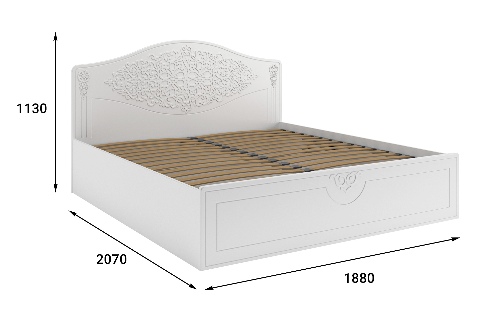 Кровать оснащена подъемным механизмом, обеспечивающим доступ в короб для хранения постельного белья. С двуспальной кроватью идеально подходит банкетка АС-34 для размещения рядом (в ногах).