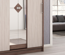 Шкаф-купе Агат обладает простым, но привлекательным стилем исполнения. Модель оснащена множеством полочек в центральном отделении и двумя евроштангами в боковых секциях.